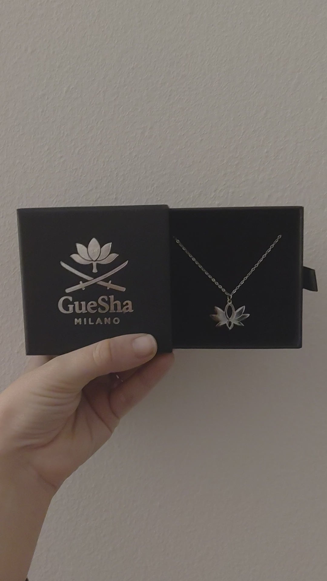 Il gioiello è presentato all’interno di una scatola rigida personalizzata GueSha MILANO, dal design essenziale e raffinato.