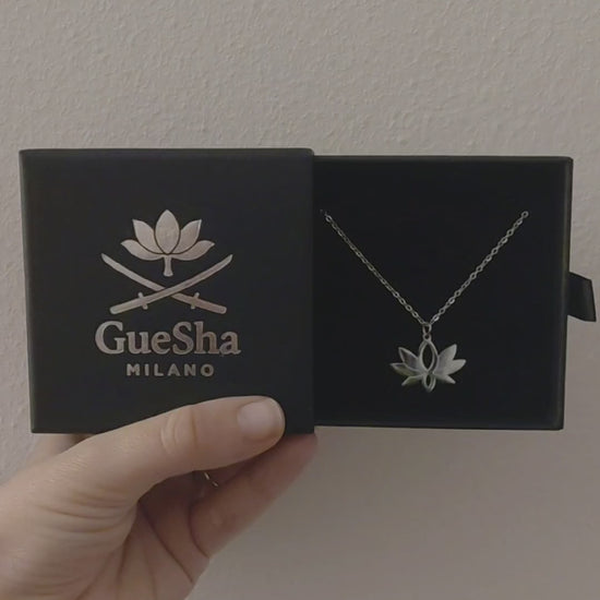 I gioielli sono presentati all’interno di una scatola rigida personalizzata GueSha MILANO, dal design essenziale e raffinato.